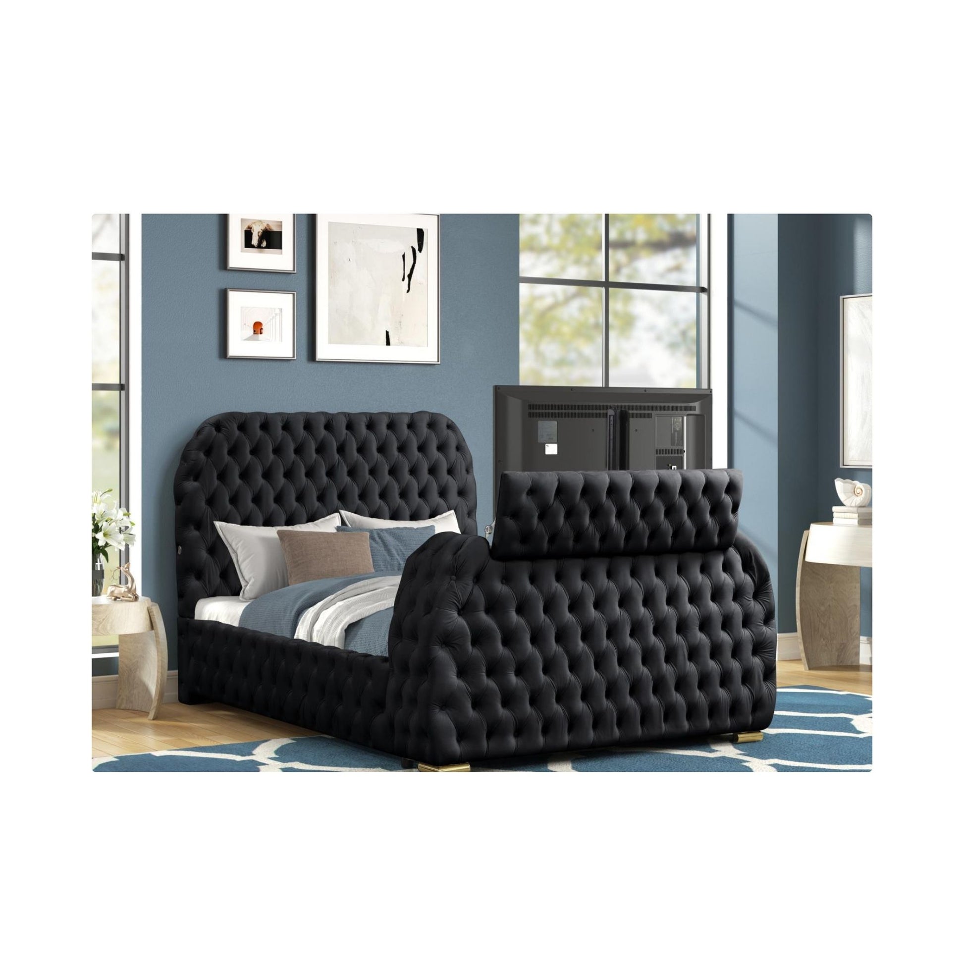 B140-K-Bed | Rose - Black Upholstered King Bed with TV Lift, Bluetooth speaker and USB type C |